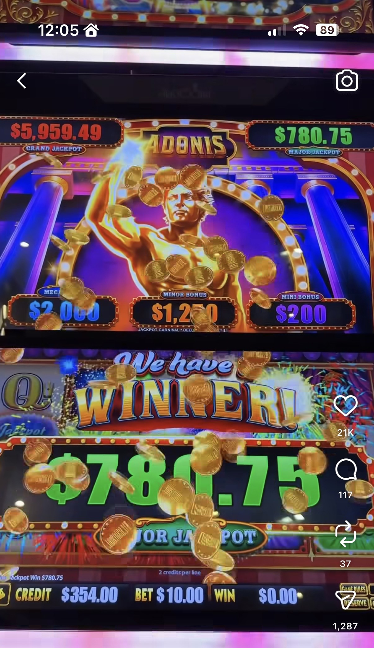 He largely posts his wins, making his followers believe he is the "luckiest guy alive", despite the odds of winning a maximum prize on the pokies being one in seven million.