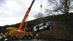 Winterwetter: Unfall im Schnee: Linienbus rutscht Abhang hinunter