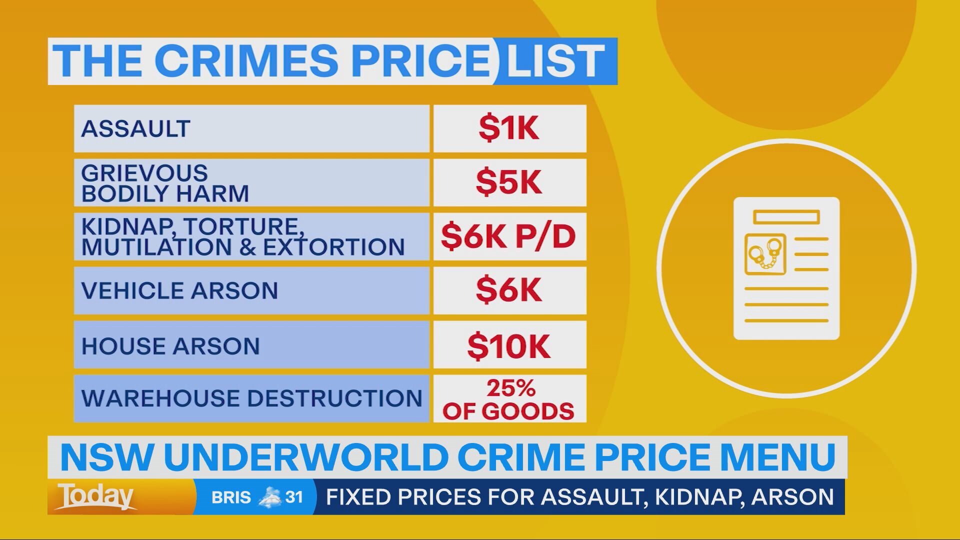 Bashings for $5k, arson for $10k: Underworld's crime 'menu' and prices revealed